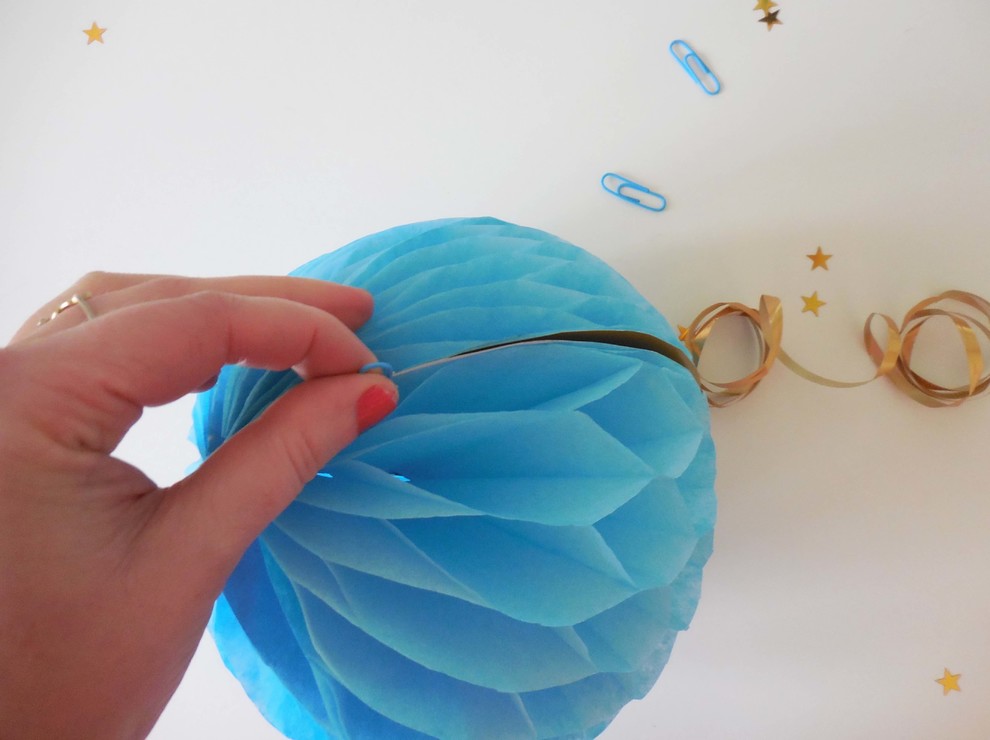 Verwenden Sie einfach ein paar Büroklammern, um den Wabenballon zusammenzuhalten. Auf diese Weise lässt er sich jederzeit wieder zusammenfalten und dezent im Schrank verstauen bis zum nächsten Anlass – und der kommt bestimmt!