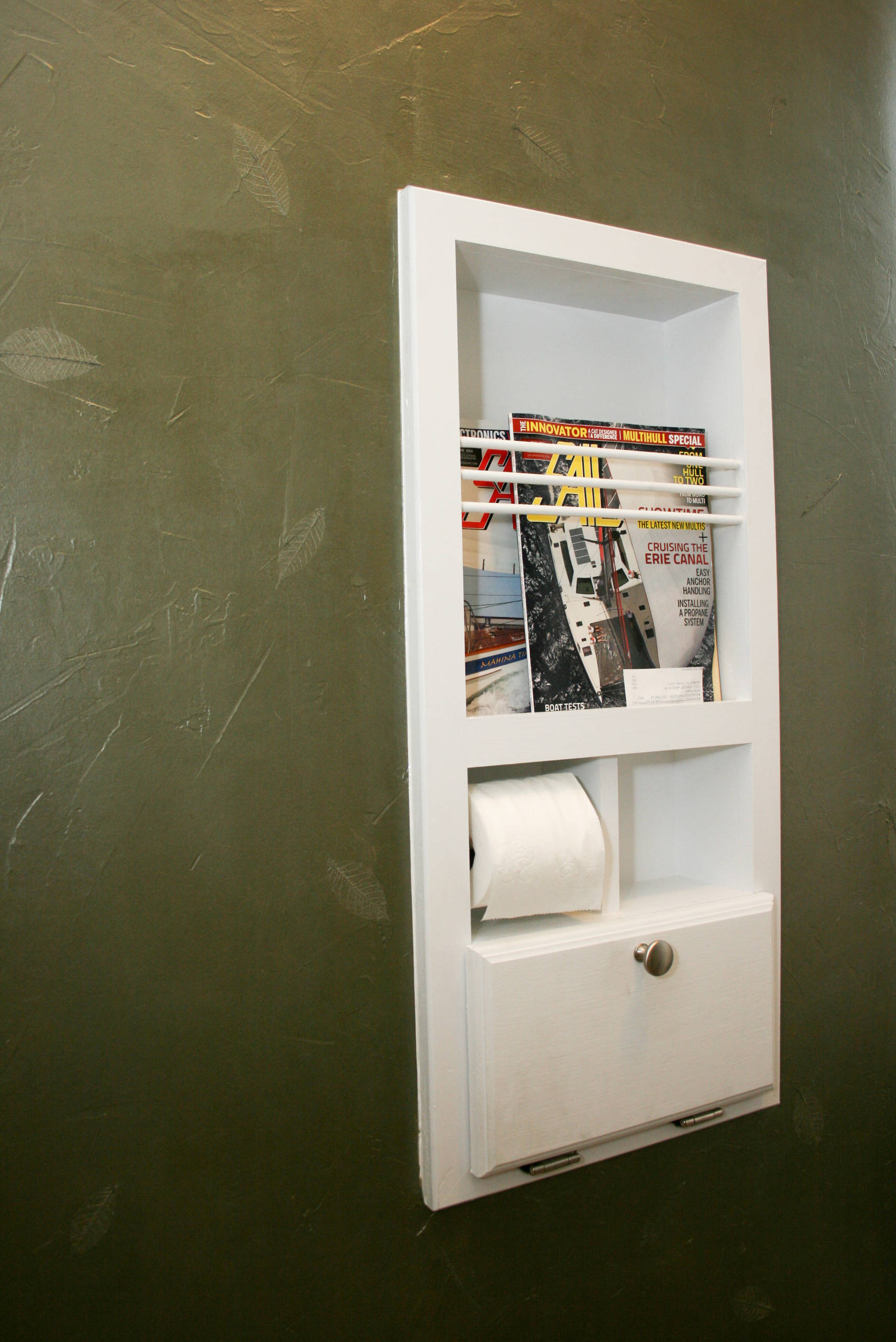 Hier hat einer klare Kante gemacht, von Anfang an. Wirkt sehr männlich, aber entschlossen – denn die Klorollen wurden schon bei der WC-Planung bedacht. Die quadratischen Ausbuchtungen geben jeder Rolle ihr Zuhause, das sieht ohne Frage cool aus. Es darf bloß nie eine Rolle fehlen, das wäre ein Fauxpas – designtechnisch zumindest.