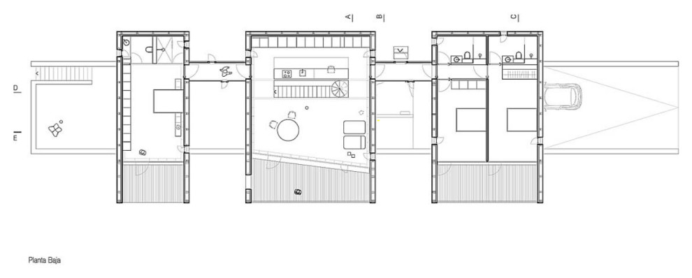 Entworfen hat Castelló das Haus für eine Familie mit ausgeprägtem Umweltbewusstsein. Es vereint diverse Passivhaustechniken, die sich im dortigen Klima bewährt haben, sowie eine große Zisterne, die das Regenwasser auffängt. Das Ensemble besteht aus drei in Leichtbauweise errichteten Wohnmodulen und einem Untergeschoss.