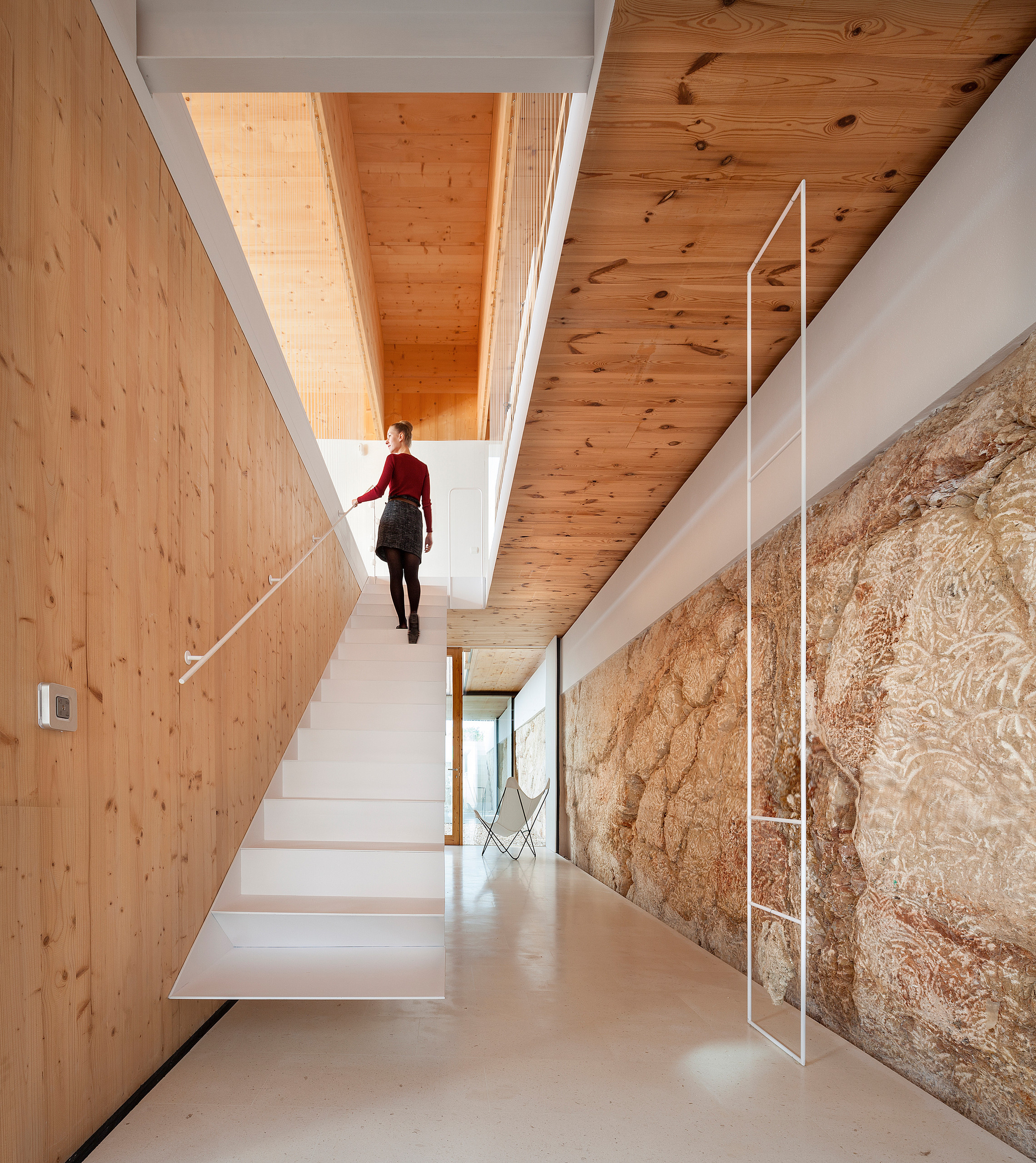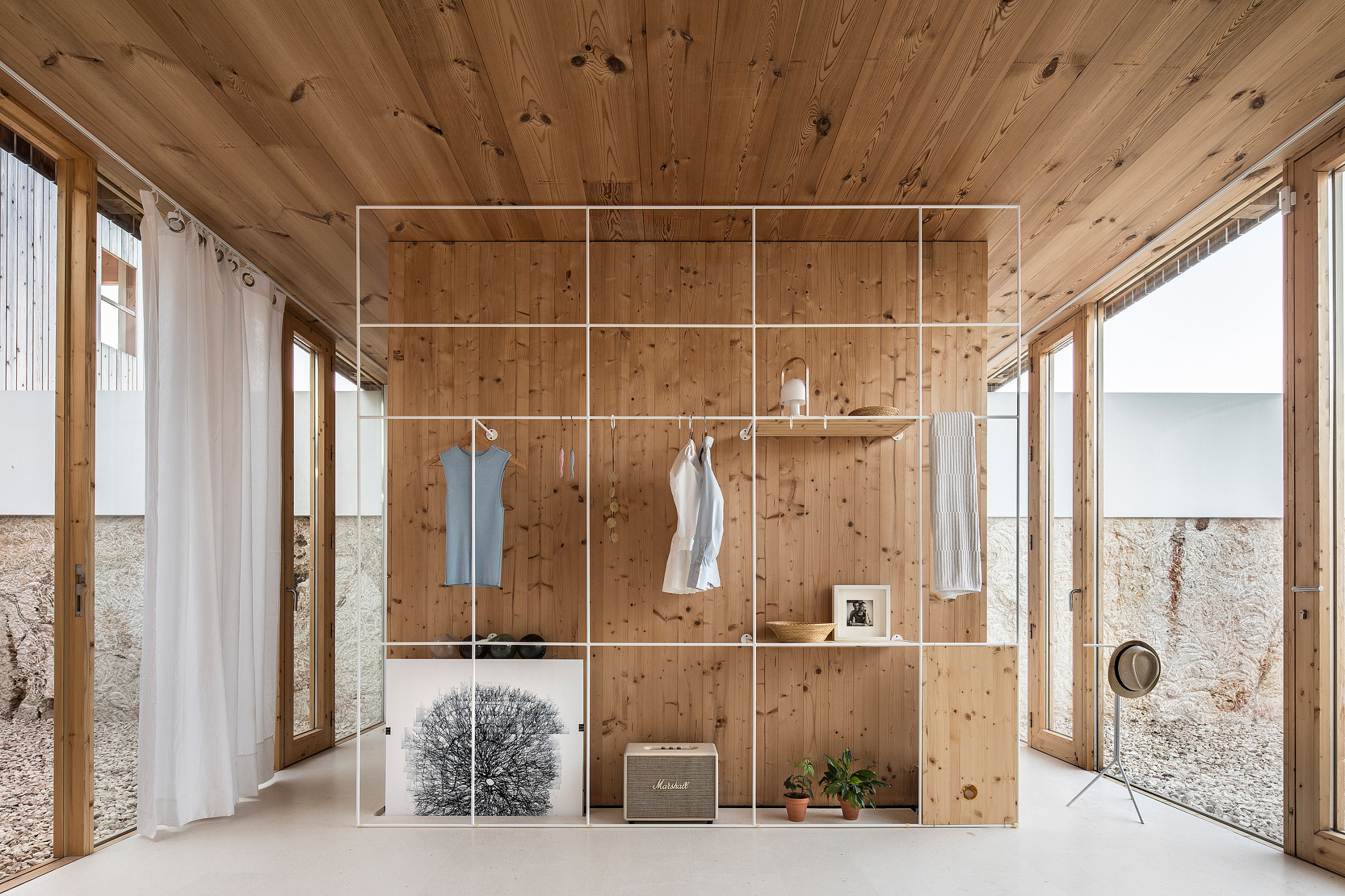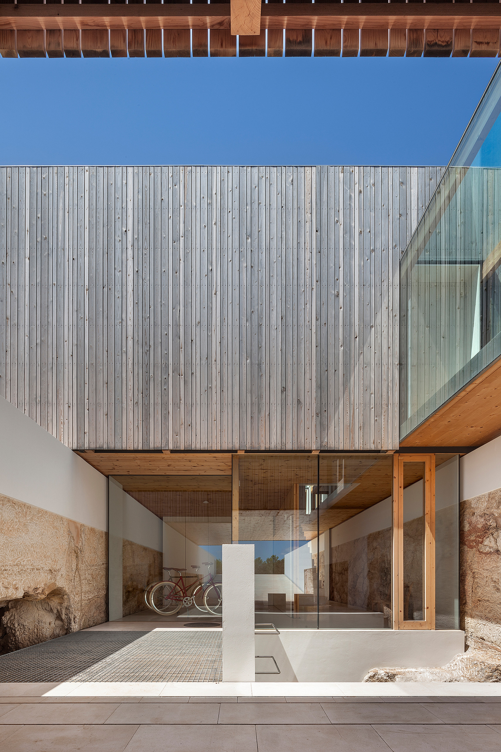 „Bei diesem Projekt haben wir besonders viel Zeit und Energie in die Vorabstudien investiert“, erklärt Castelló. Das Gesamtdesign „verweist auf zwei der bedeutendsten Traditionen der Insel: Das Untergeschoss ist eine Hommage an den Steinabbau und die Holzfassade des Obergeschosses verweist auf die traditionellen Bootshäuser aus Holz, die die Küste der Insel säumen.“