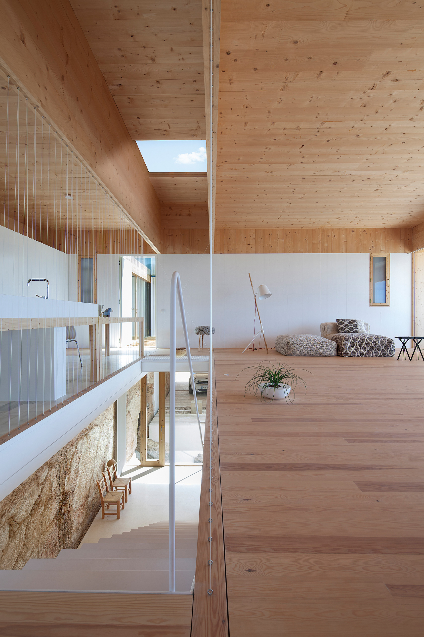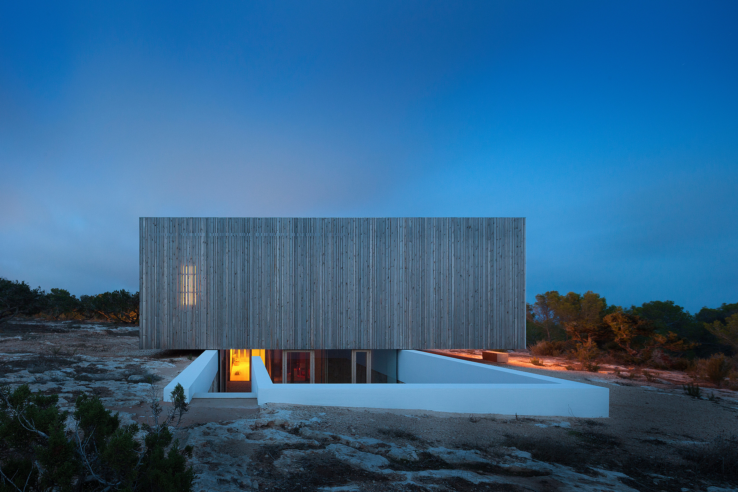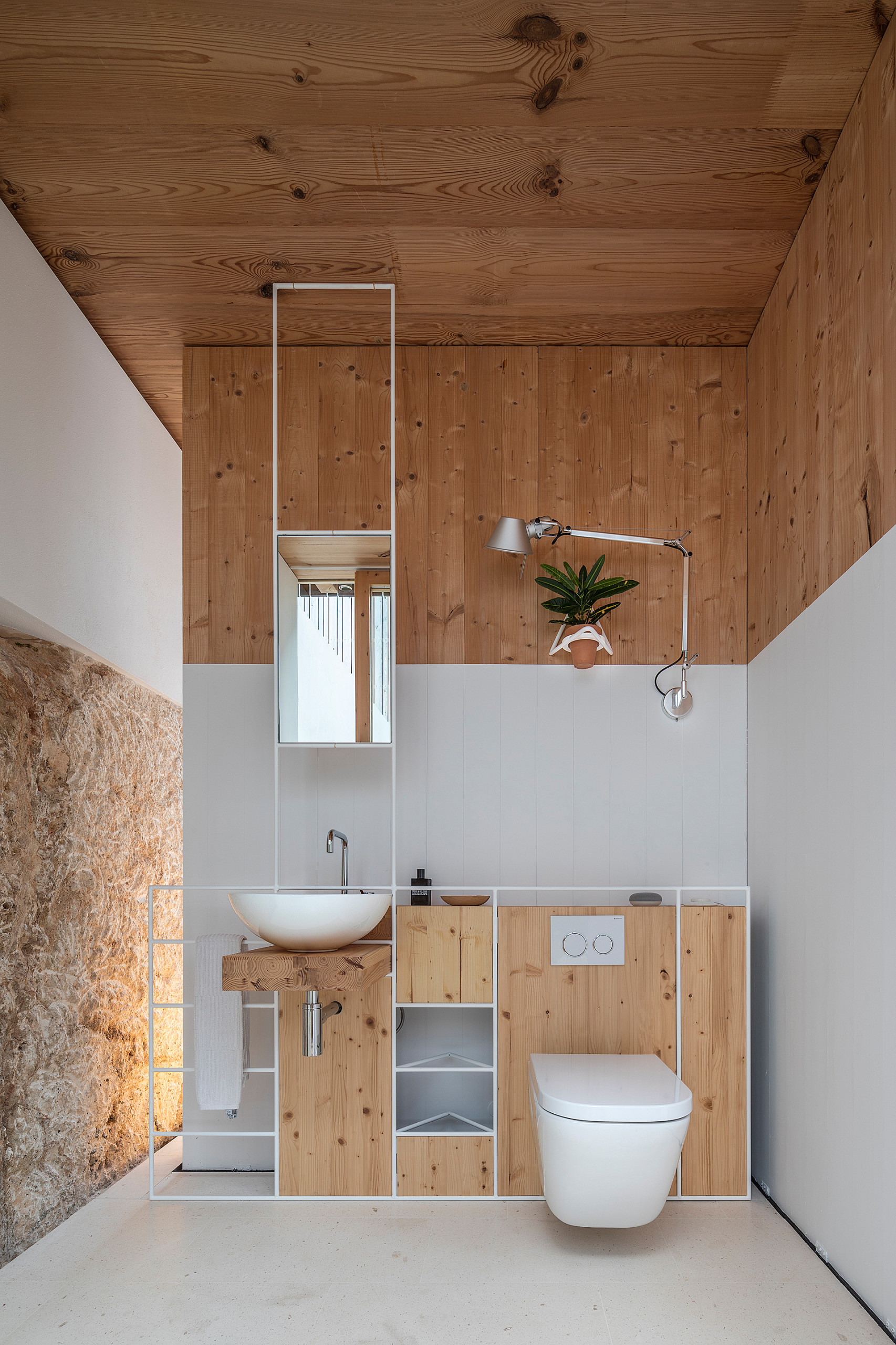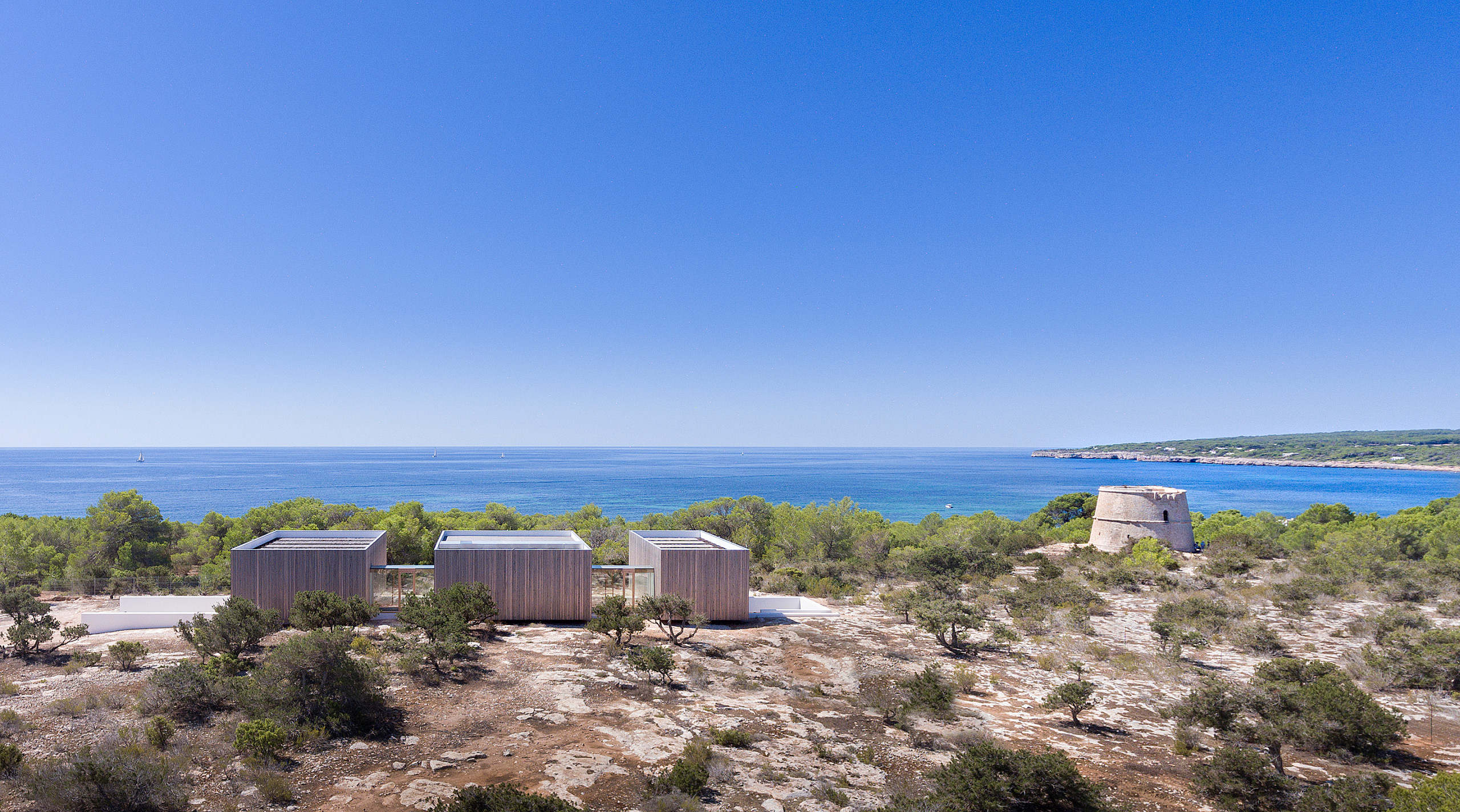„Bei diesem Projekt haben wir besonders viel Zeit und Energie in die Vorabstudien investiert“, erklärt Castelló. Das Gesamtdesign „verweist auf zwei der bedeutendsten Traditionen der Insel: Das Untergeschoss ist eine Hommage an den Steinabbau und die Holzfassade des Obergeschosses verweist auf die traditionellen Bootshäuser aus Holz, die die Küste der Insel säumen.“
