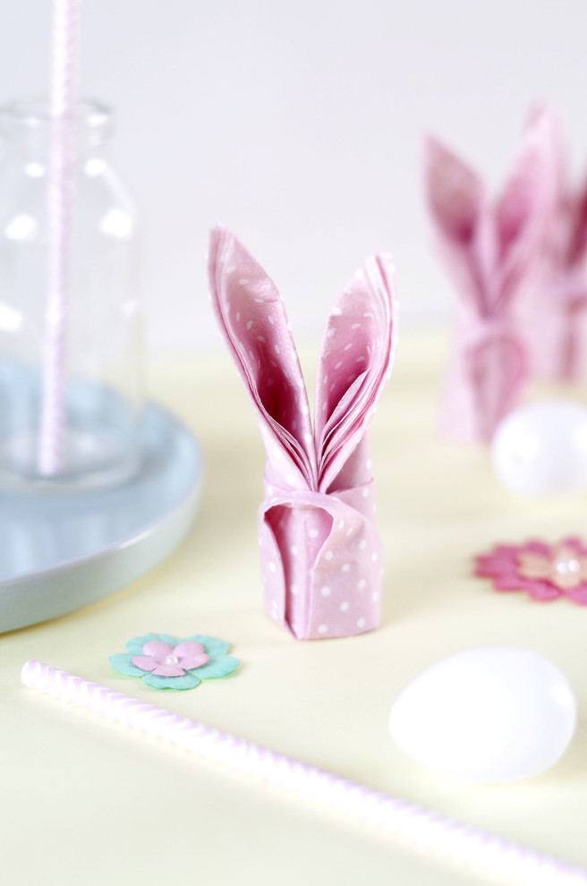 11. Fröhliche Ostern! Servietten im Osterhasen-Look. Ein Lächeln zaubern Sie Ihren Gästen mit diesen lustig gefalteten Servietten in Osterhasen-Form aufs Gesicht. Wie das geht, erfahren Sie in dieser Servietten-Falt-Anleitung.