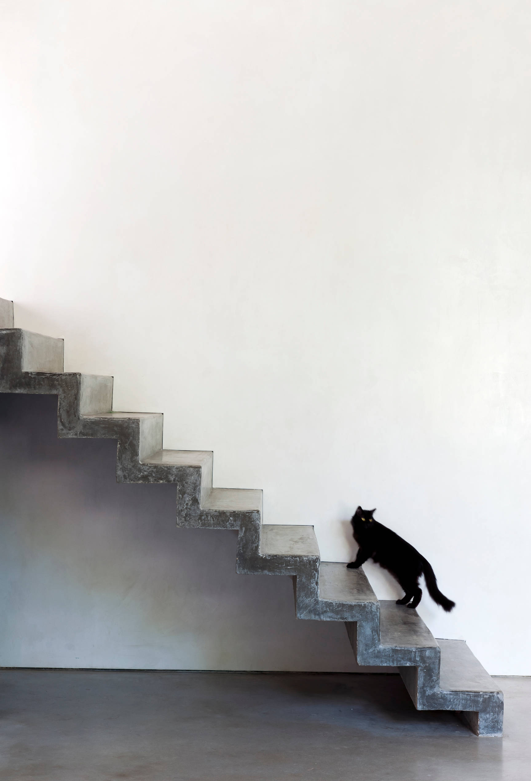 Auch Faltwerktreppen besitzen keine sichtbare Unterkonstruktion. Zusätzlich zu den Trittstufen sind hier auch Setzstufen in gleicher Stärke verbaut. Beide verschmelzen miteinander, die Treppe scheint zu fließen. Dass eine Faltwerktreppe wie aus einem einzelnen zick-zack-förmig gefalteten Materialstück gefertigt aussehen kann, zeigen die Varianten oben von Spitzbart Treppen und links vom Planungsbüro Shade House Development. Aufgrund der