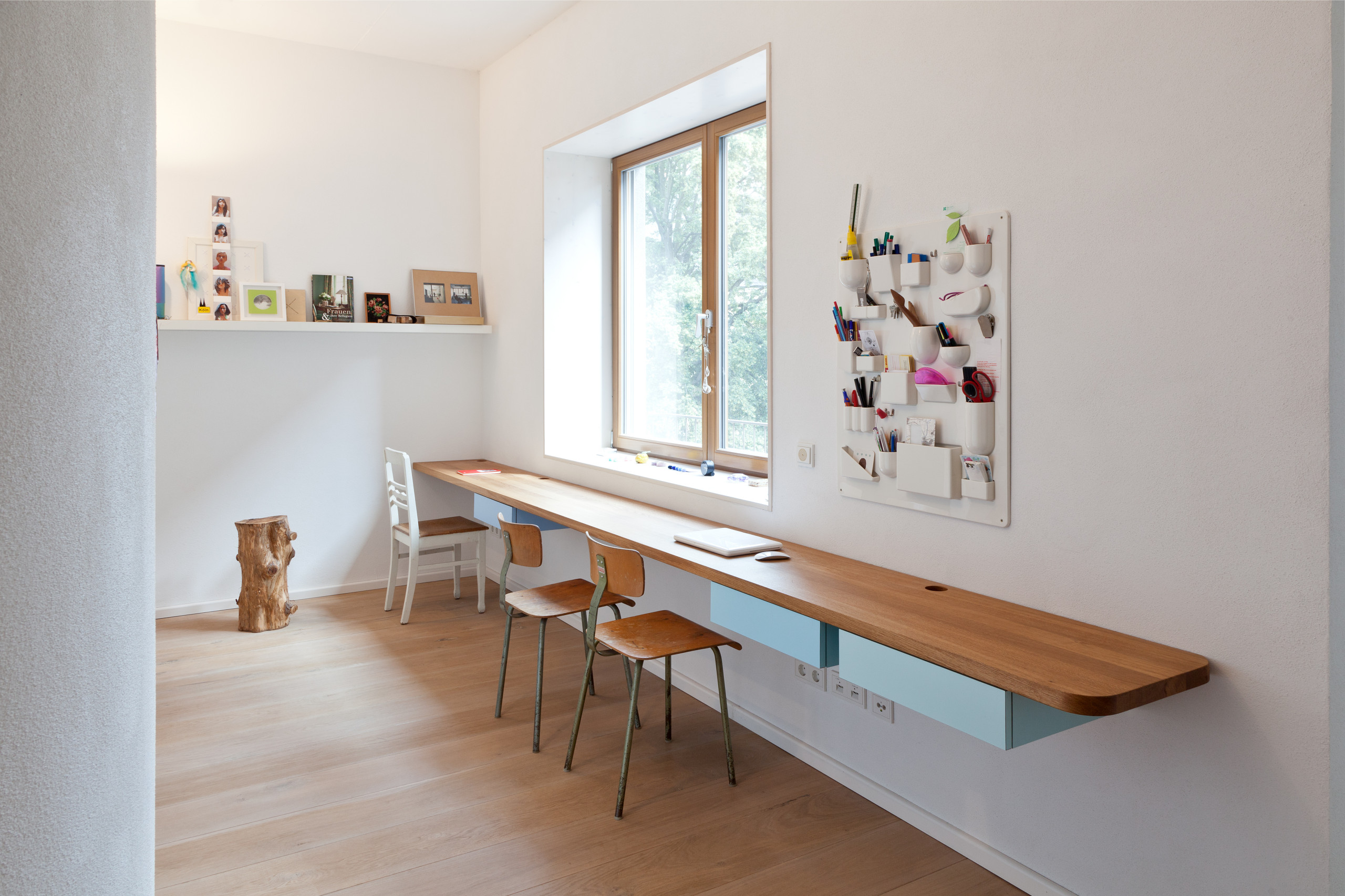 Oder Sie sorgen mit einer maßgefertigten Regalwand für Privatsphäre in Ihrem geteilten Kinderzimmer. Das Gute in diesem Beispiel: wird die Trennung irgendwann mal nicht mehr gebraucht, wandert das beidseitig nutzbare Regal einfach an die Wand und dient dort als „normales“ Regal.