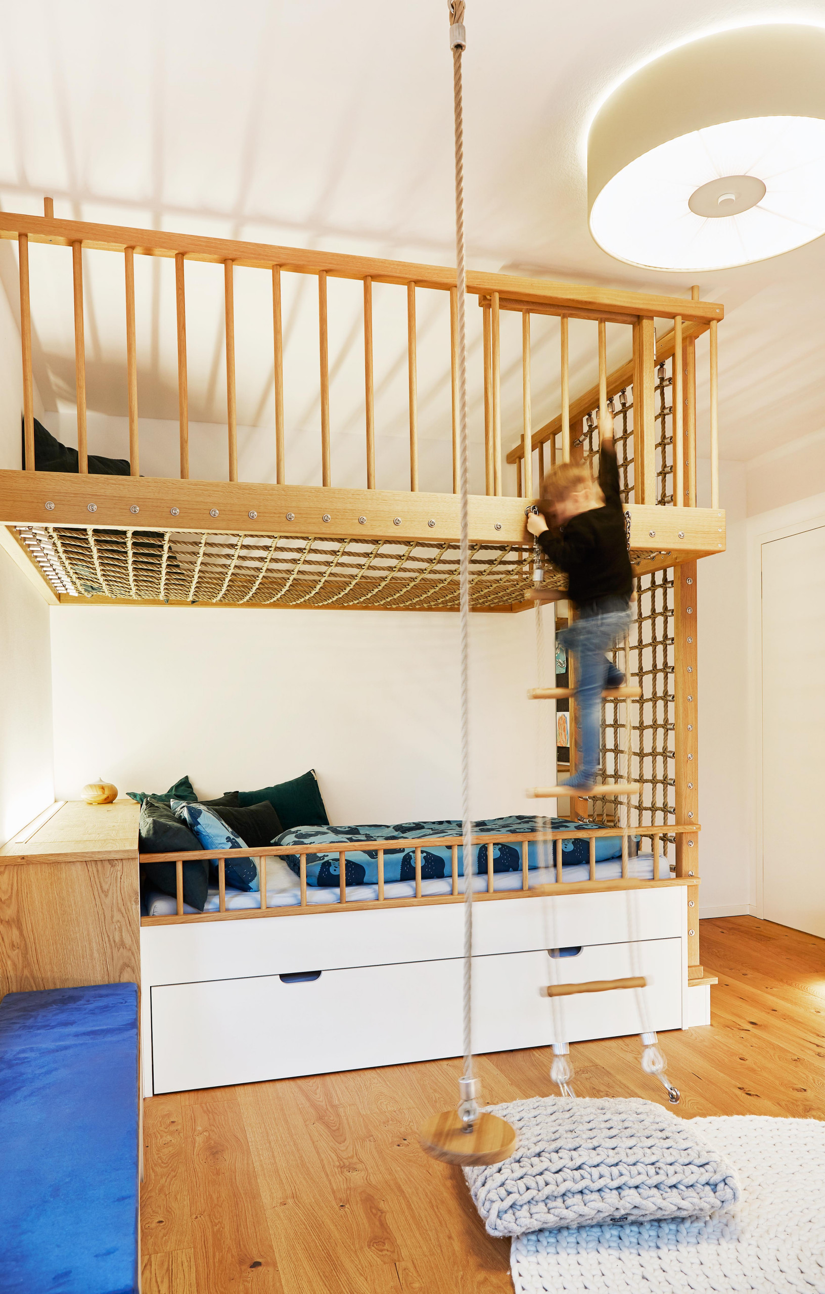 Noch stimmungsvoller wird es mit einer Lichterkette, auch ein Baldachin aus Stoff ist leicht über das Gerüst geworfen, sodass das gemütliche Kinderbett im Handumdrehen zur kuscheligen Spielhöhle wird.