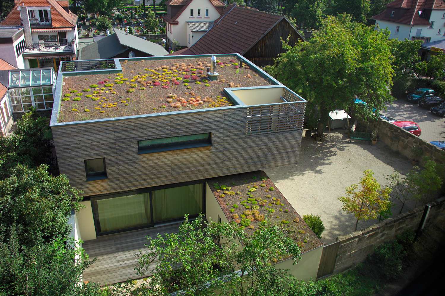 - Begrünung: Ein begrüntes Dach trifft den Geschmack vieler Bauherren, da es eine dämmende Wirkung hat, und ist vielerorts sogar vorgeschrieben.