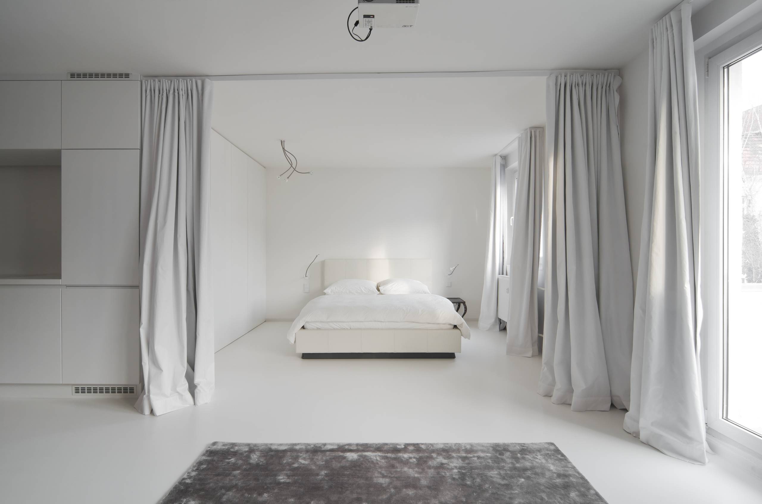 John Huston Architekten machen es in Berlin-Kreuzberg beispielhaft vor: Mit einheitlichen Vorhängen zur Raumteilung und vor dem Fenster wirkt der schlichte, L-förmige Großraum stimmig und vor allem gemütlich!