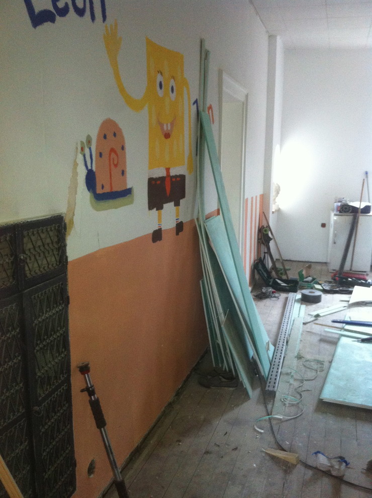 VORHER: Zum Vergleich: Wo zur Besichtigung noch Spongebob an der Wand grinste, war kaum an stilvolles Wohnen und Arbeiten zu denken.