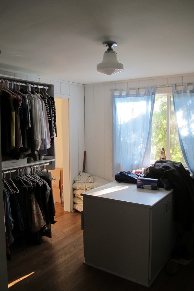 VORHER: Für die Interior-Designerin Amber Lewis war schnell klar, dass sich aus dem drei Mal drei Meter großen Raum – der glücklicherweise mit einem Fenster ausgestattet war – leicht ein gemütliches Kinderzimmer machen ließe. „Vorher wirkte der Raum, den die Kunden als begehbaren Kleiderschrank nutzten, fast schon etwas höhlenartig“, erzählt Lewis. „Die Decke war ziemlich niedrig, aber glücklicherweise konnten wir eine Zwischendecke herausreißen und so an Höhe gewinnen.“