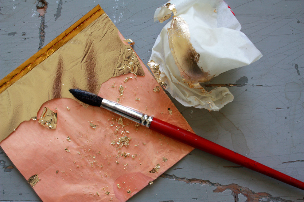 - Goldlack und / oder Blattmetall bzw. Schlagmetall (inklusive Anlegemilch)