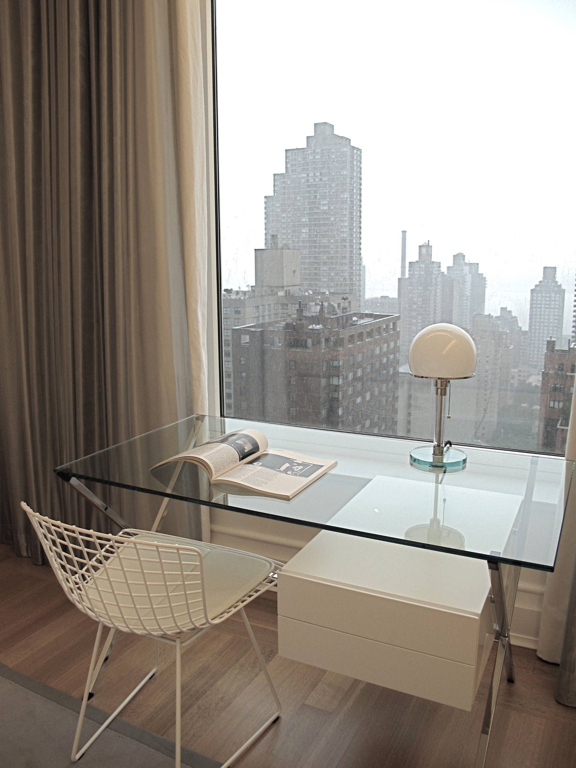 Verfallen Sie keinem Starkult! Zu viele Designikonen in der Wohnung geben einzelnen Möbelstücken nicht die Aufmerksamkeit, die sie verdienen. Die „WG 24”-Leuchte von Bauhaus-Schüler Wilhelm Wagenfeld zum Beispiel ist hier der absolute Hingucker, neben dem „Side Chair” von Herbert Bertoia – der allerdings (Achtung!) ein Mid-Century-Klassiker ist!