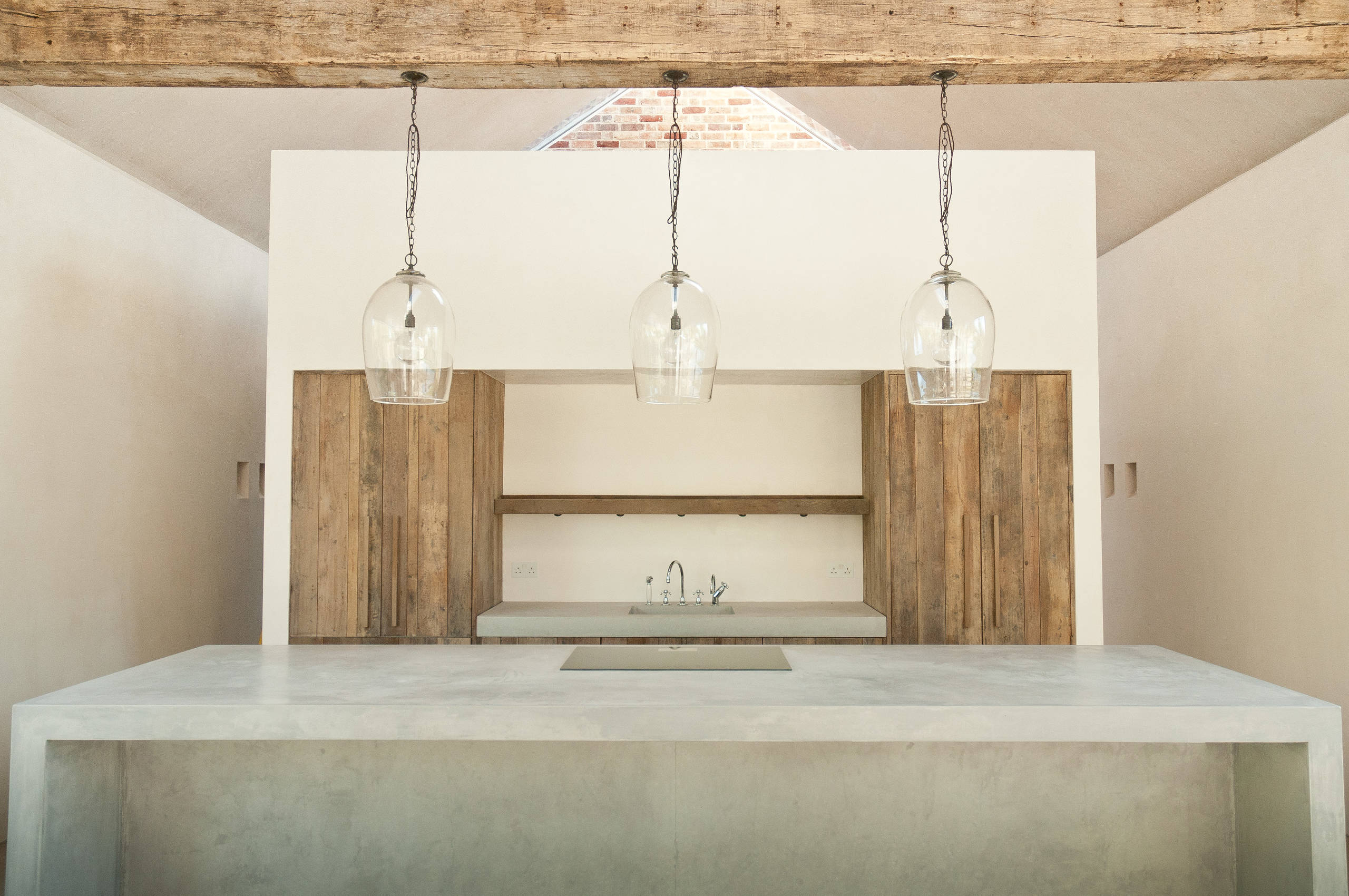 In dieser Küche im englischen Aylesbury wurden die Kücheninsel sowie Arbeitsflächen mit Tadelakt verputzt.