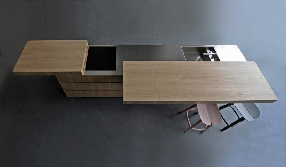 Ganz einfach: Eine große Edelstahlplatte, die sich per Temperaturregler gesteuert erhitzen lässt. Entweder ist die Platte mit einer umlaufenden Rille ausgestattet (wie im Bild), oder es gibt eine Aussparung am unteren Ende, durch die man Reste entsorgen kann. Gegrillt und gegart wird mit Spachteln und Garglocken.