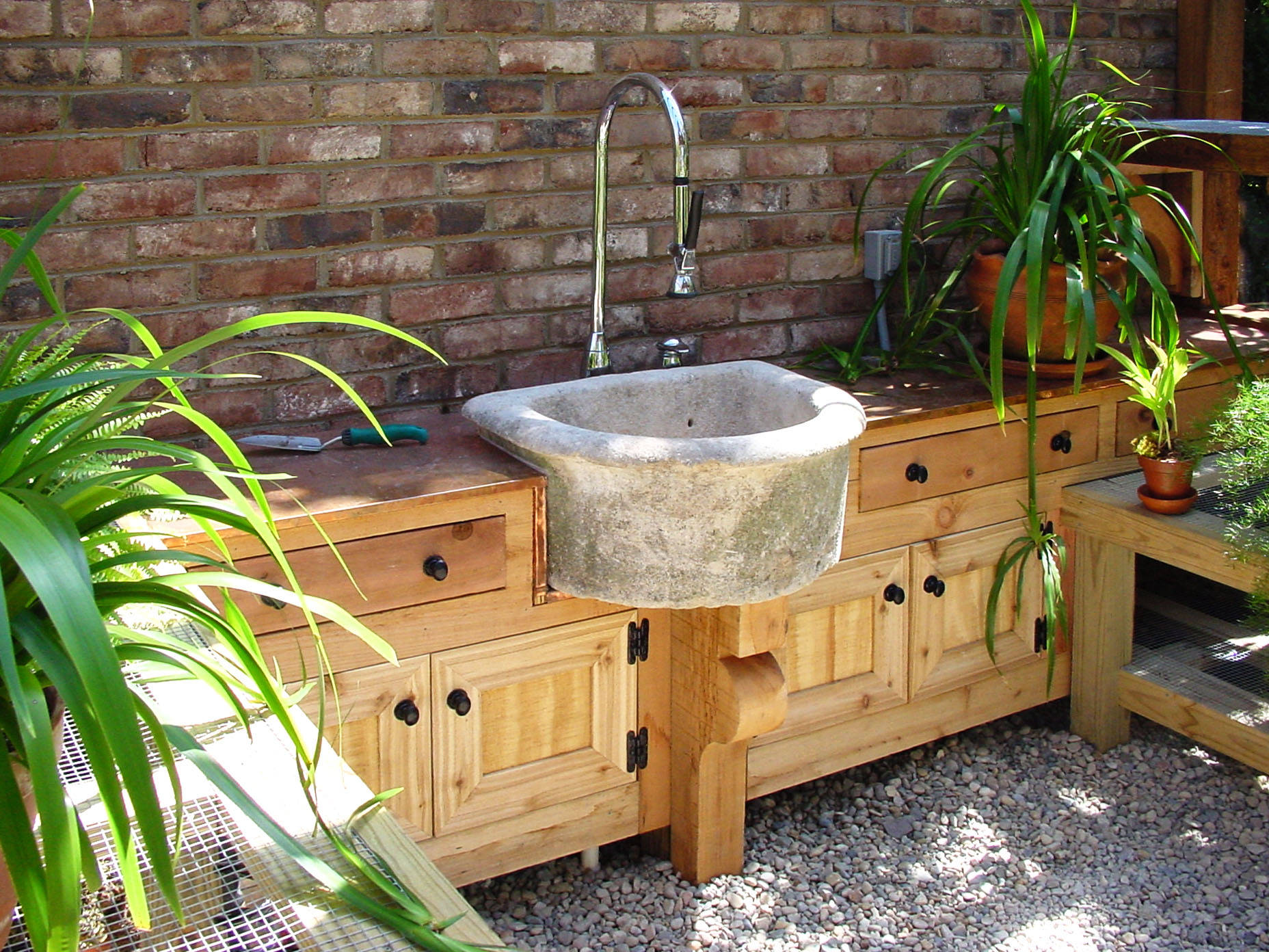 Wer einen Wasseranschluss im Garten oder Schuppen hat, sollte über den Einbau eines Waschbeckens in den Pflanztisch nachdenken. Das kann ungemein praktisch sein, nicht nur zum Waschen schmutziger Hände, sondern auch für das Wässern der Wurzelballen kleinerer Pflanzen oder des frisch gebundenen Blumenstraußes.