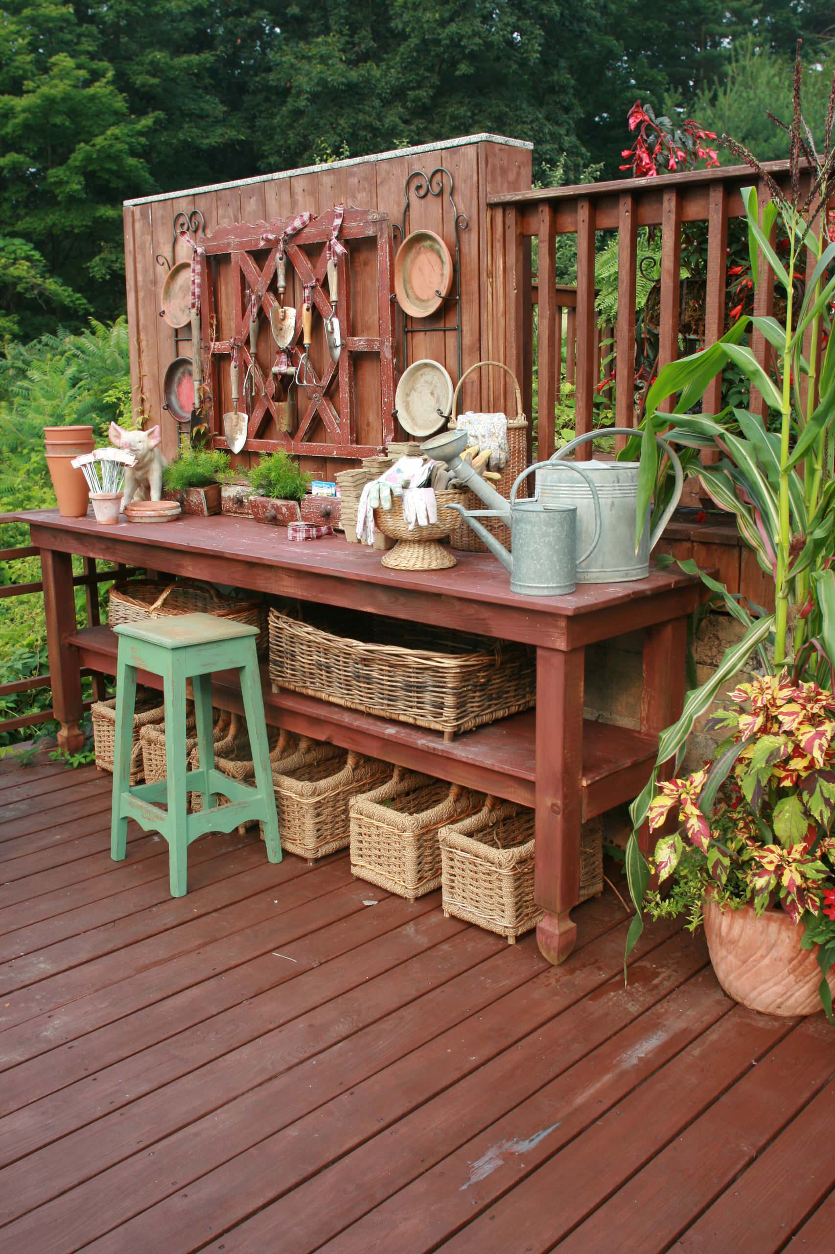 Werkbank für den Garten: bezaubernde Pflanztische & Pflanzregale
