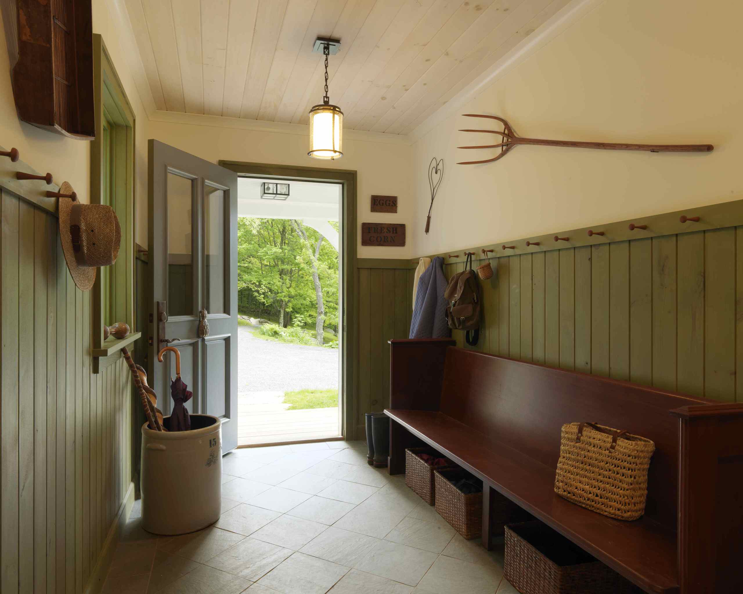 Es muss ja nicht gleich eine durch den gesamten Raum verlaufende Hakenreihe sein. Eine kurze Variante der Shaker-Leiste macht zum Beispiel im Flur als Garderobe oder in der Küche als Aufbewahrungsidee für kleinere Utensilien eine gute Figur.