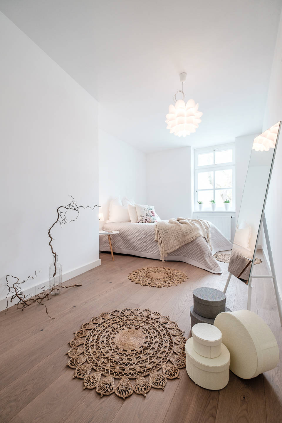 Stellen Sie einen Schaukelstuhl auf die Terrasse oder den Balkon, und schon fühlen Sie sich wie ein echter Amerikaner, der den Ausblick auf seine weiten Felder genießt. Die meisten modernen Schaukelstühle haben leider nicht das bequeme Shaker-Geflecht. Falls ihrer auch keins hat, greifen Sie stattdessen auf ein Sitzkissen aus Leinen oder ein kuschliges Schaffell zurück. So bleiben Sie dem natürlichen Stil treu. In einer schönen Farbe, wie diesem Türkis, sind die Stühle mit Kufen ein stylischer Hingucker.