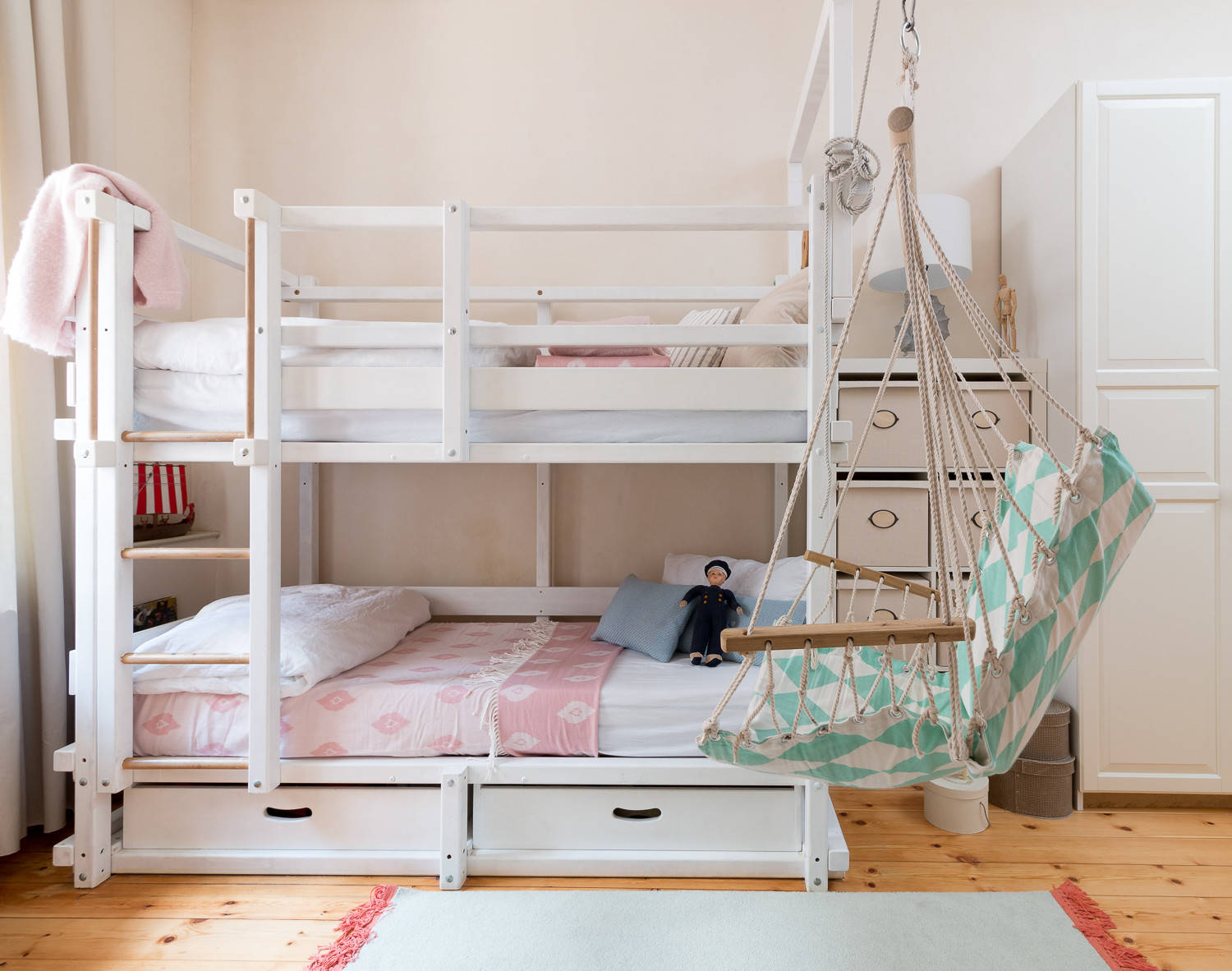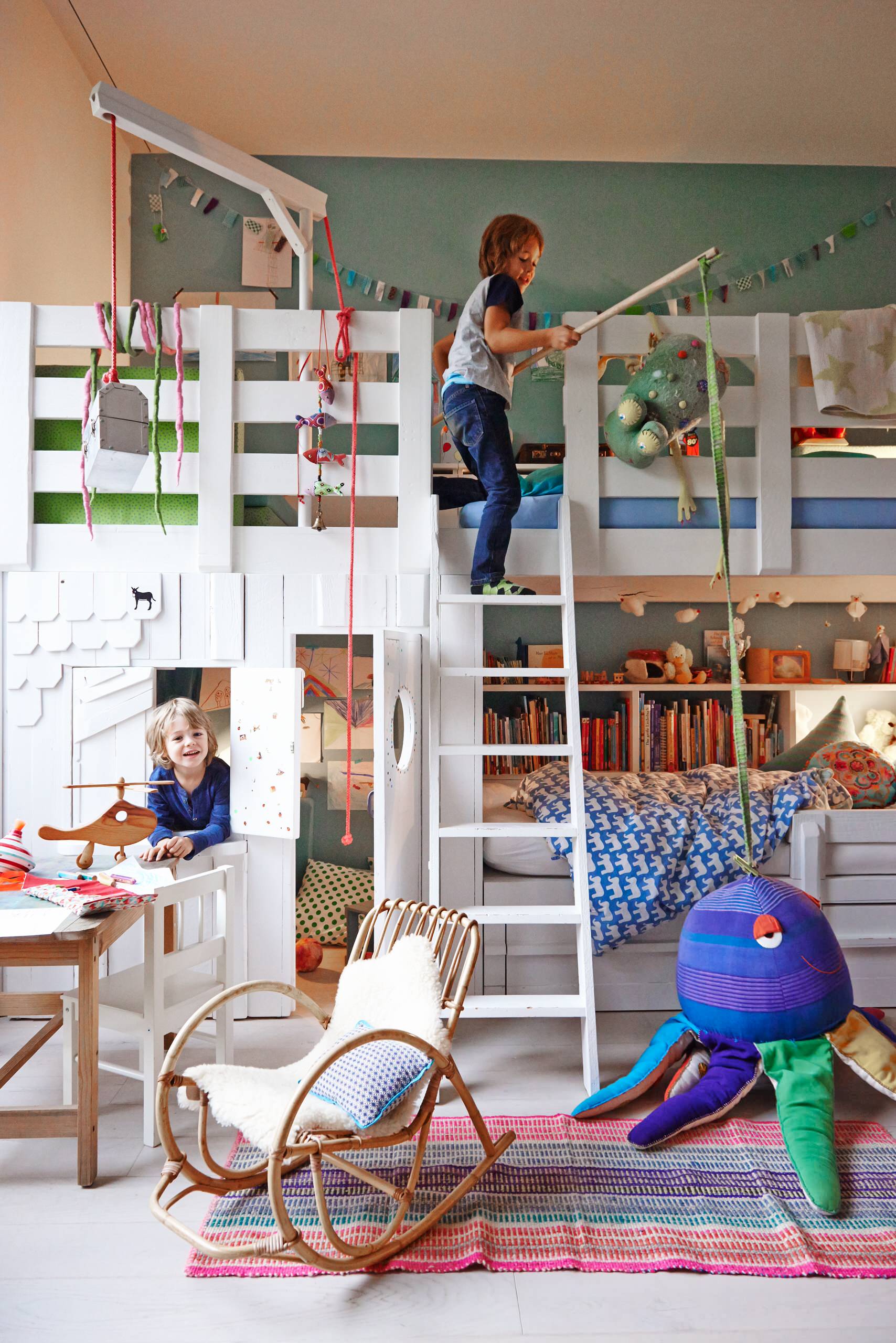 Eins oben, eins unten. Auf den ersten Blick scheint ein Hochbett das Nonplusultra für ein geteiltes Kinderzimmer zu sein. Denn eins ist klar: Stapelt man die Betten übereinander, bleibt mehr wertvolle Spielfläche auf dem Boden frei.