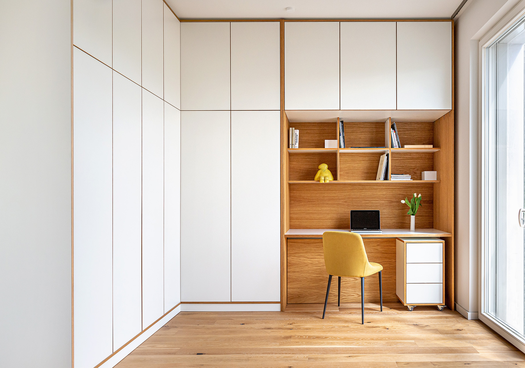 - Richten Sie Ihre Ankleide so ein, dass Sie den Raum auch anders nutzen können. Ein Schreibtisch etwa lässt sich gut in eine helle Ankleide integrieren.