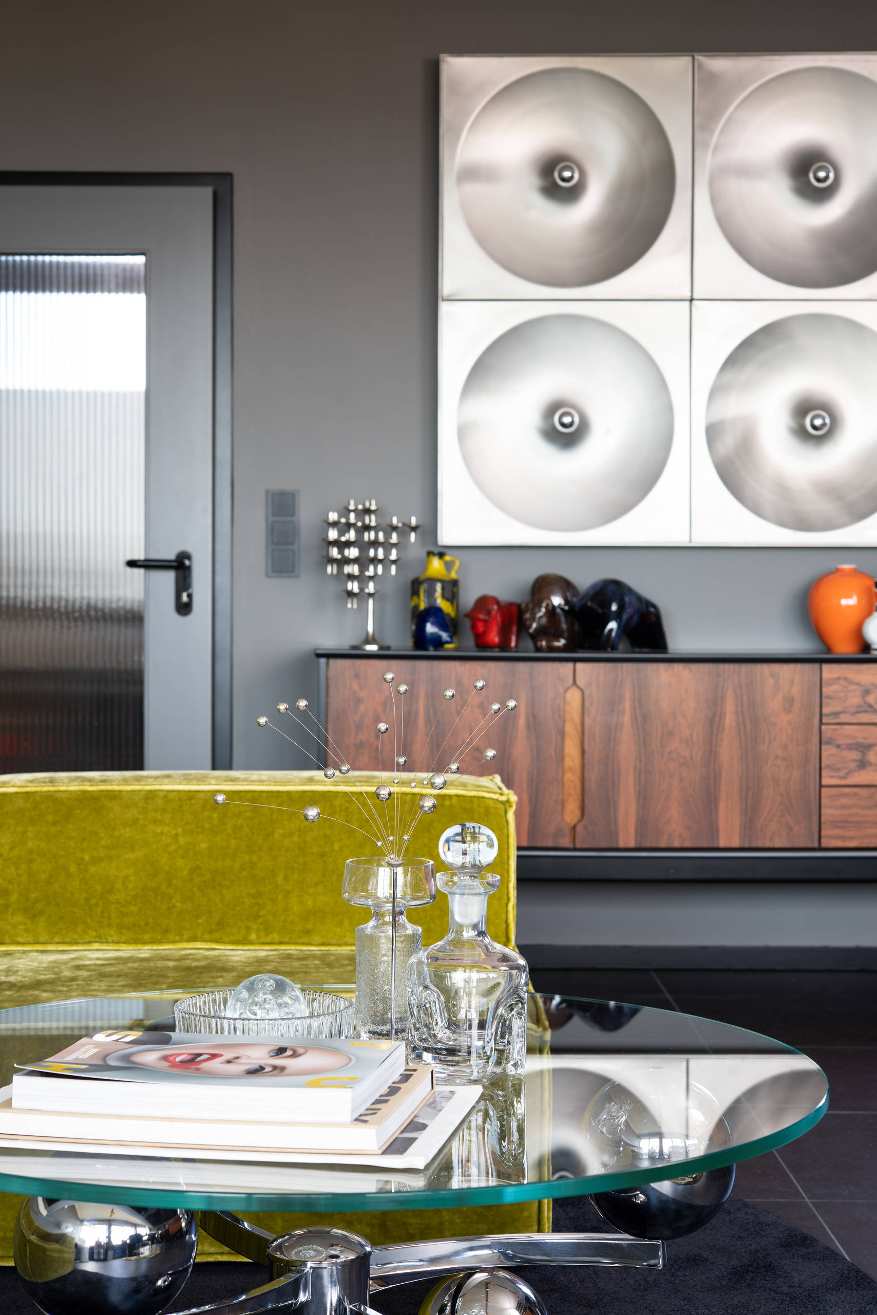 In dem Gebäude aus den Siebzigern sollte auch die Wohnung im Stil dieses schrillen und bunten Jahrzehnts eingerichtet werden. Die Substanz der Wohnung war gut, allerdings war sie eher „spießig“ eingerichtet, wie Kartal betont. Der Kunde kam bereits mit konkreten Vorstellungen und einigen Möbeln und Accessoires auf die Innenarchitektin zu. „Die Gestaltung der Wohnung war Teamwork. Meine Aufgabe bestand vor allem darin, den roten Faden hineinzubringen“, erzählt Kartal.